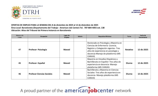 Conexión Laboral – Área Local Manatí-Dorado Puerto Rico
