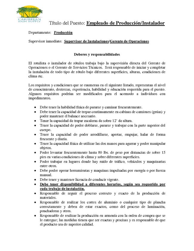 Enlace a PDF con detalles: https://jldlmanatidorado.org/wp-content/uploads/2021/07/Instalador-rotulos-y-empleado-produccion-Caribbean-Sign-Supply.pdf