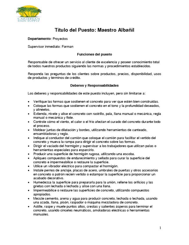 Enlace a PDF con detalles: https://jldlmanatidorado.org/wp-content/uploads/2021/07/Maestro-Albanil-Caribbean-Supply.pdf
