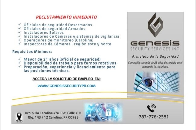 Apr92021 Genesis Security Services – Reclutamiento Inmediato EmpleosBy lajlmdwpadminApril 9, 2021 Details